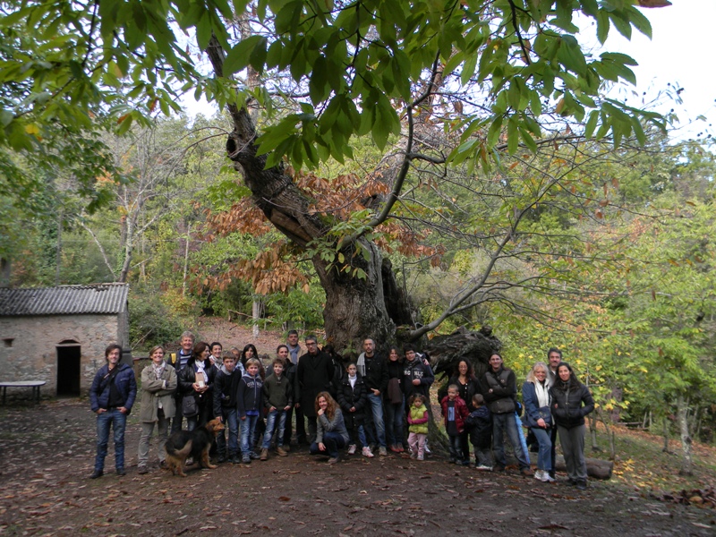Ecco uno scatto dalla passeggiata: foto di gruppo in compagnia del castagno plurisecolare denominato L’Inginocchiato.