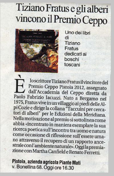 Domenica scorsa è stato conferito a Tiziano Fratus il Premio speciale Ceppo Natura 2012