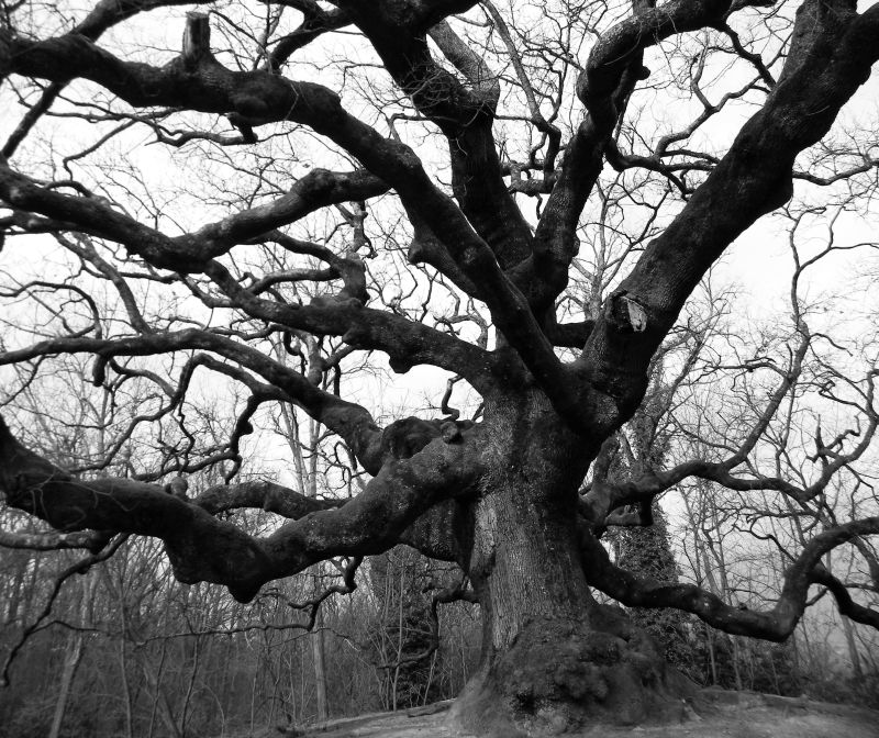 La leggenda dice che lungo questo sentiero che conduce a Collodi, passasse lo scrittore di Pinocchio. La letteratura recita che sia questa la celebre quercia sulla quale venne impiccato il burattino e sotto le cui radici sono state interrate le monete d’oro. La botanica ha sancito che si tratta di una roverella (Quercus pubescens) di circa seicento anni di età. Nonostante tutto l’albero non è segnalato, la cura dell’uomo si limita ad una staccionata che lo circonda, nessun cartello, nessuna palina informativa. Mi radico sotto queste lunghissime ramificazioni per un’ora, nel frattempo passa una ragazza dallo sguardo gentile, che saluta, e tre macchine, due delle quali si avvicinano all’albero, gli esseri umani che vi sono dentro sbilencano menti e labbra, e poi via. Girarci intorno è l’esperienza più esaltante, osservare i cambi di prospettiva, uno studio di forme e ipotesi che nessun capolavoro dell’ingegno può offrire. Ne misuro il tronco, 450 cm a petto d’uomo. Non è altissima, fra i 14 ed i 15 metri. Stimo il diametro della chioma in circa 35 metri. Undici paletti sostengono altrettante branche dalla parte del sentiero e della staccionata. Il bosco qui è rumoroso, popolato di uccelli. Le campane delle frazioni e dei paesi intorno rintoccano.