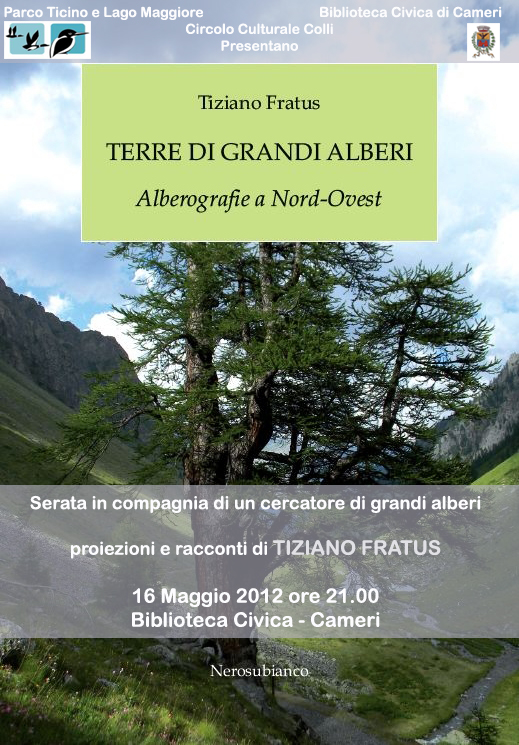 Mercoledì 16 maggio 2012, alle ore 21.00, incontro con Tiziano Fratus e i grandi alberi della provincia di Novare e del Piemonte.
