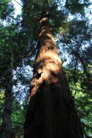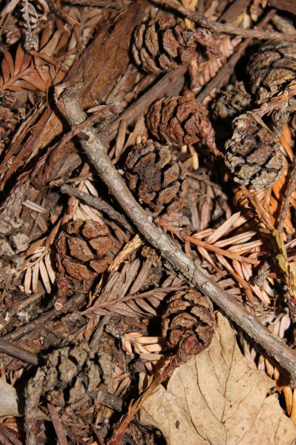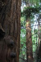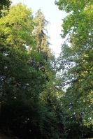 Non una, bensì due sequoie sempervirens. La prima presenta un tronco unico, la seconda si apre in due crescite, architettura spesso presente nei parchi italiani. La coppia è più alta, stimo intorno ai 33-35 metri di altezza, una trentina di metri la solitaria. I tronchi sono cresciuti su ceppaie, vere e proprie isole radicali costellate di rigetti e tentativi capitozzati. Con una certa fatica mi arrampico, facendo attenzione a non causare alcun danno e misuro. La circonferenza della prima ceppaia alle base è di 860 cm, il tronco lo misuro a circa 150 centimetri di altezza, ottenendo 300 cm. La seconda ceppaia presenta tre giovani crescite intorno al grosso tronco che si biforca, ma è più facile misurare: 468 cm. Nel mezzo della divaricazione c’è il resto di una terza crescita spezzata. A terra è pieno di piccoli coni di sequoia, grandi come la falange di un mignolo. Mentre lotto con le fronde per la misurazione alcuni cani si incuriosiscono e vengono a sbirciare, scodinzolando, i padroni, al solito modo di queste parti, mantengono l’aplomb “turines” e macinano pensieri.