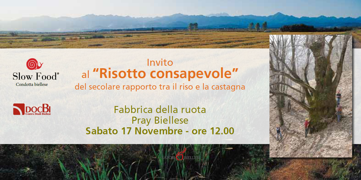 Stamattina si gustano le antiche ricette delle famiglie biellesi che insaporivano il risotto con le castagne raccolte nei boschi. A seguire incontri e anticipazione del nuovo libro di Tiziano Fratus, La linfa nelle vene.