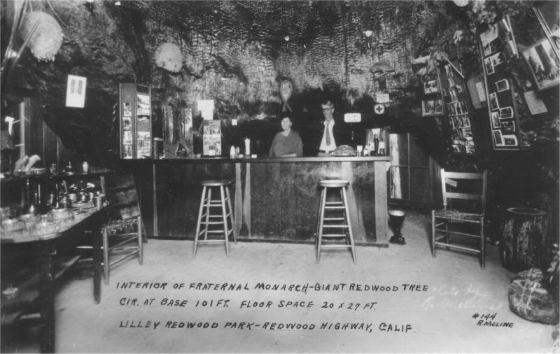 Dopo un decennio di tentativi, finalmente nel 1925 lei e il marito riuscirono ad acquisire i 55 acri di terreno adiacenti all’abitazione, dove svetta la sequoia nota come Fraternal Monarch, alta 250 piedi (75 metri), 101 di circonferenza alla base (ovvero oltre 30 metri) e il cuore arso, bruciato da un incendio divampato tre secoli prima, ad opera degli indiani che usavano questa tecnica per ripulire i boschi, una tecnica analoga viene usata ancora oggi dai ranger. Il nome sembra derivare da un incontro organizzato dai boscaioli che lavoravano qui prima dell’acquisizione, proprietaria era la Sage Land and Improvement Company, proprio all’interno della base dell’albero si raccolsero in settanta persone, per questa ragione ribattezzata “Fraternal Monarch”, il “Monarca della Fratellanza”.