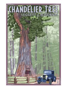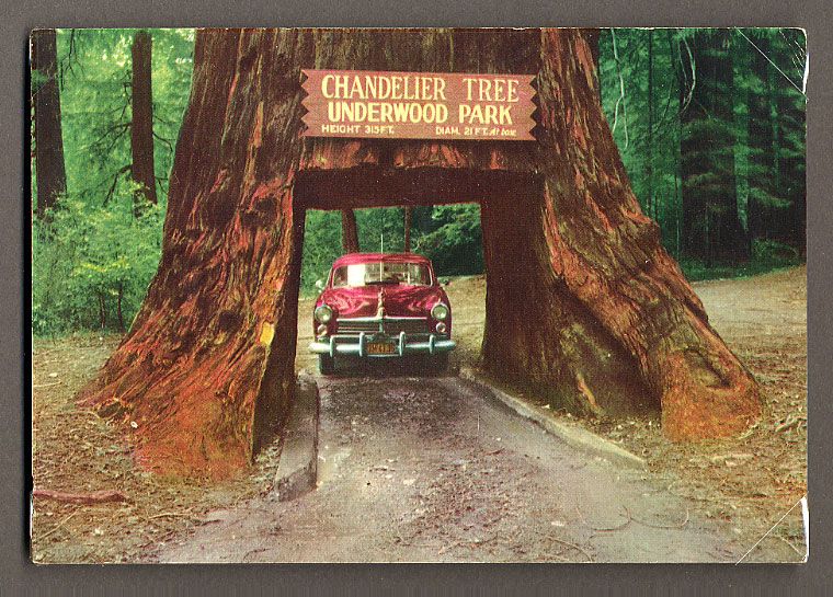 Dopo l’approfondimento dedicato al World Famous Treehouse Redwood, la grande sequoia dentro cui Minnie Stoddard Lilley (1875-1947) costruì un negozio tutt’ora funzionante, a molti nota col nome di Fraternal Monarch, alta 250 piedi (75 metri), 101 di circonferenza alla base (ovvero oltre 30 metri), ora è la volta di un’altra celebre sequoia costale (Sequoia sempervirens): Chandelier Tree. Si tratta di una conifera alta 315 piedi (96 metri!) ai margini della città di Leggett, alla base della quale è stato scavato un passaggio largo un metro e 83 cm e alto due metri e sei. Qui sotto sono passate generazioni di automobili, e ancora oggi ve ne passano in visita alla Avenue of The Giants, una strada turistica lunga 31 miglia che tocca grandi alberi, parchi e curiosità di ogni genere. L’albero presenta un’architettura a candelabro, con ramificazioni che si allargano e salgono a toccare l’impressionante misura di cui sopra. Lo scavo è stato realizzato negli anni Trenta da parte dei coniugi Charlie e Hazel Underwood, con l’aiuto di alcuni forestali, fa parte di una forma di “tradizione”, se così si può descrivere, che ha portato a perforare la base delle grandi sequoie, sia costali sia giganti. Un altro esemplare celebre di sequoie “tunnelled” è il Wawona Tree, sulla Sierra, vicino al Grant Grove, uno dei luoghi sacri e più visitati dal turista dei parchi californiani. Siamo a 175 miglio a nord di San Francisco, prossimi alla congiunzione fra la Austostrada 1 e la 101, si prende la Drive Thru Tree Road e si passa sotto il celebre albero.