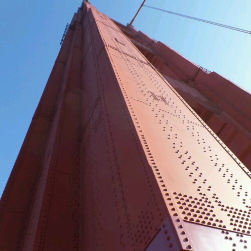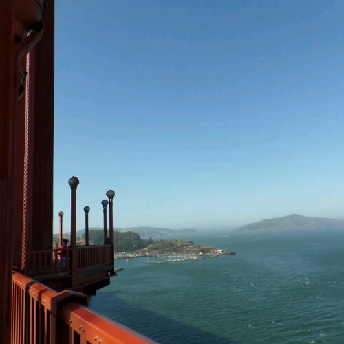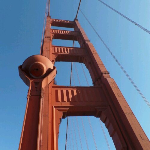 Ai miei lettori non sara’ sfuggita la predilezione che nutro nei confronti dei monumenti naturali rispetto alle opere dell’uomo. Eppure le opere in acciaio sfuggono a questa regola personale. Torri e piazze, statue a cavallo o su asini, palazzi, chiese, mai mi hanno entusiasmato come una Tour Eiffel e di certo mai come questo ponte rosso a nord di San Francisco. Me lo immaginavo piu’ stretto, e solitario. Invece e’ visitato da un mare di persone, turisti a piedi da un lato, ciclisti dall’altro. Oggi e’ il 4 luglio e probabilmente molte persone sono in giro con le famiglie. Tutti i dettagli sono geometricamente perfetti. E tutto e’ dipinto di rosso. Dalla cima delle due torri ai tiranti, dai bulloni alle pareti di contenimento. Fa impressione constatare quanto poco spessa sia la pavimentazione in cemento sulla quale camminiamo. La giornata e’ splendida, blu selvaggio nel mare, con le vele della Louis Vitton Cup oltre il golfo, l’isola di Alcatrax dipinta laggiu’ come un miraggio di Turner, e un cielo maestoso intorno ai nostri sguardi. Ci sono opere che si collocano in un paesaggio e opere che sanno generare paesaggio. Il resto e’ poesia.