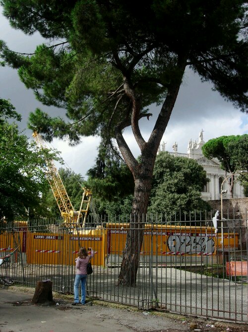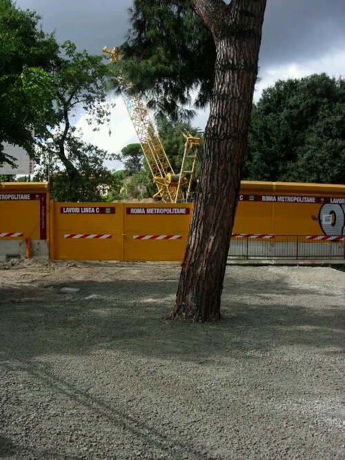 Dopo l’abbattimento di alberi secolati per i lavori della futura Metro C, di cui ho parlato in rubrica su La Stampa, i pochi sopravvissuti stanno ricevendo un trattamento durissimo. Ecco le foto di un pino completamente cementato. Che sia una vendetta nei riguardi degli abitanti che si sono opposti ai lavori? Di certo un caso che entrera’ nella storia dei peggiori interventi urbanistici degli ultimi anni.