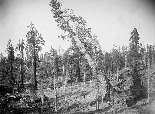 Gli americani la chiamano Logging era, è stato un periodo di sfruttamento intensivo delle foreste degli Stati Uniti, fra gli anni Ottanta del XIX e gli anni Venti del XX secolo. Anche le foreste di sequoia costale e i grandi esemplari della Sierra Nevada vennero travolti da questa smania di guadagno, ne fecero la spesa diversi esemplari fra i maggiori che abbiano mai radicato sul pianeta. Uno di questi fu il Mark Twain Tree, una sequoia alta 100 metri e con una circonferenza alla base di 27 metri, che venne abbattuta, dopo tredici settimane di duro lavoro, dai lumberjack Bill Mills e S. D. Phips, nell’autunno dell’anno del Signore 1891.