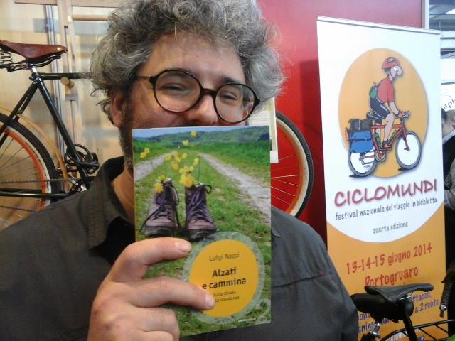 Stand Ediciclo editore: Tiziano Fratus e Vittorio Anastasia (direttore editoriale), Luigi Nacci che mostra Il sussurro degli alberi di Tiziano Fratus, Tiziano Fratus che mostra Alzati e cammina di Luigi Nacci.