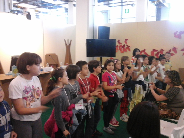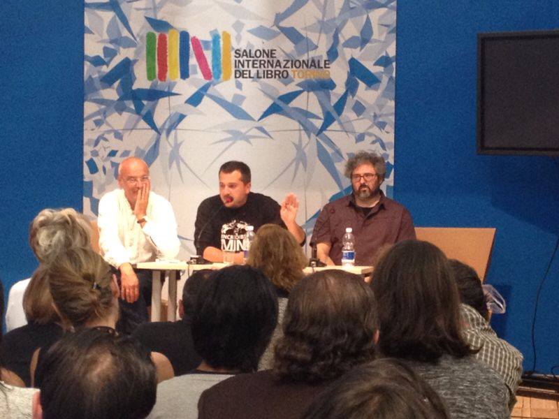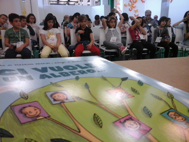 Venerdì 9 maggio, spazio Book, consegna degli attestati di Scuola Radice ai bambini e alle insegnanti della Scuola Kennedy di Torino e della Scuola elementare di Boves (CN); hanno partecipato Stefano Delmastro (LiberLab), Fabio Dutto (Araba Fenice editore) e Tiziano Fratus, autore de Ci vuole un albero.