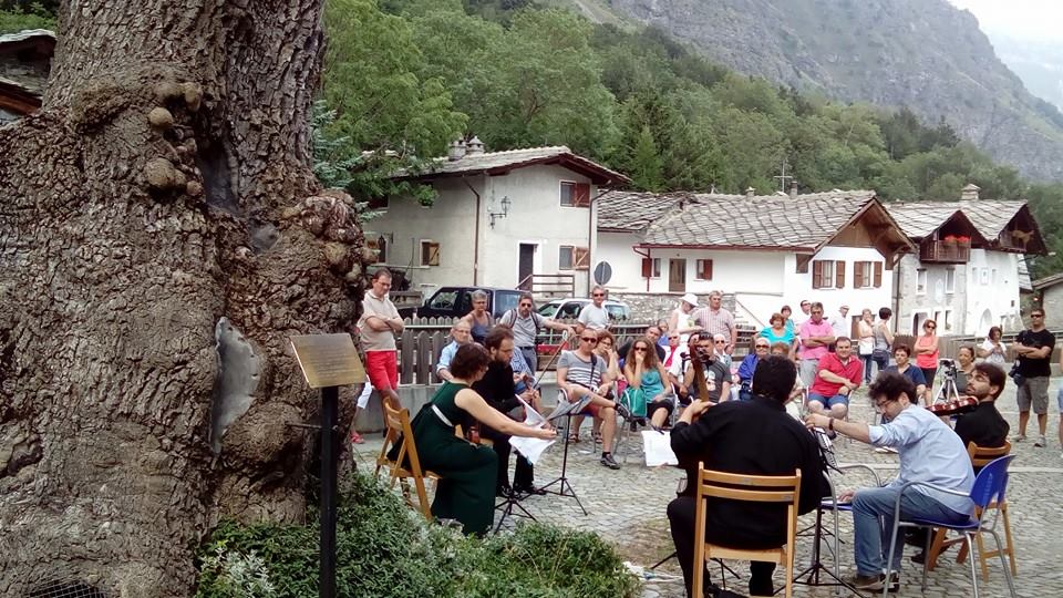 Exilles Fest, organizzato dalla Fondazione per la Musica e Il Libro di Torino e la Fondazione San Paolo, ha toccato ieri il più piccolo comune del Piemonte ed uno dei tre più piccoli e meno popolosi d’Italia: Moncenisio. Nella piazza centrale svetta il maggiore frassino d’Italia, trisecolare, che è stato protagonista della prima dendrofonia composta da Carmine-Emmanuele Cella ed eseguita da Quartetto Fauves. Tiziano Fratus ha introdotto l’evento e raccontato alcuni aneddoti riguardanti questo gigante delle Alpi. ecco gli scatti. La prossima tappa si svolgerà a fine luglio in Grecia, sotto le fronde di uno dei maggiori platani d’Europa, a Tsagarada, nell’ambito del Festival Internazionale Pelion.
