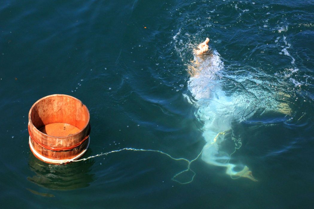 Uno dei momenti più perturbanti del viaggio in Giappone è stata la dimostrazione delle “ama”, le pescatrici di perle nella baia di Toba. Una figura avventurosa sulla quale la letteratura e l’antropologia hanno lavorato. Le prime ostriche coltivate della zona risalgono al 1893, quando Kokichi Mikimoto sperimentò una nuova tecnica. Ma le “ama” esistevano già. La pesca avviene soltanto nei mesi invernali, da novembre a gennaio. Le ragazze e le donne si gettano in acqua con un secchio di legno che resta a galla, legato a loro tramite una corda. I corpi sono avvolti da lunghe vesti bianche. Nelle acque si aggirano le meduse. Dopo profondi respiri si immergono e restano a setacciare il fondo venti o trenta secondi, poi risalgono, come spettri venuti da un altro mondo. Restano a galla un minuto e si reimmergono. La loro fatica si fa sempre più evidente ad ogni ritorno all’ossigeno. E noi li ad osservare, costretti fra stupore e timore… spettatori di un’abilità che richiede coraggio e tempra, ma anche di una sequenza di conseguenze che potrebbe celare la tragedia.