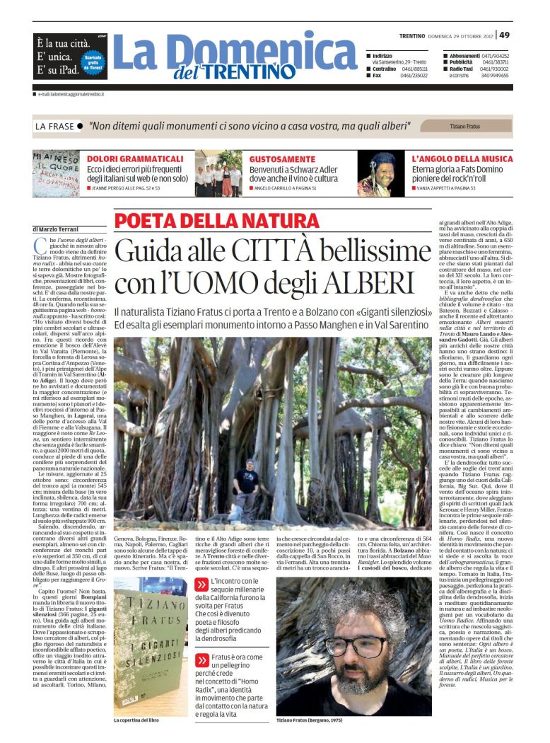 >>> I giganti silenziosi e Tiziano Fratus su La Domenica del Trentino