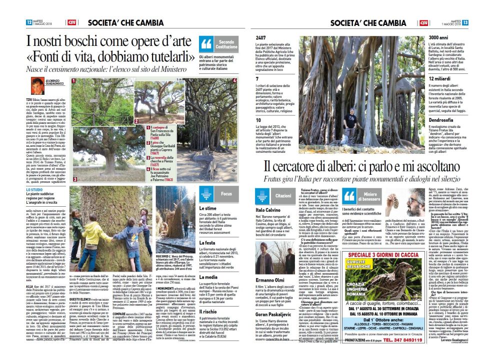 Ieri, questa doppia pagina su alberi e sul mio pensiero naturalistico, radicale e spirituale, è uscita su QN Quotidiano Nazionale, La Nazione, Il Giorno ed Il Resto del Carlino.
