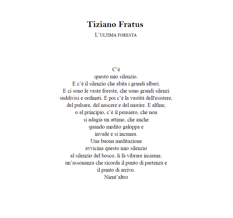 Fra i poeti italiani recentemente inclusi figura Tiziano Fratus. Il poeta bergamasco ha registrato cinque liriche dall’opera Poesie creaturali: Terra, Definizione di bianco lepre, I filosofi bianchi, L’ultima foresta, Ad un misterioso lettore.