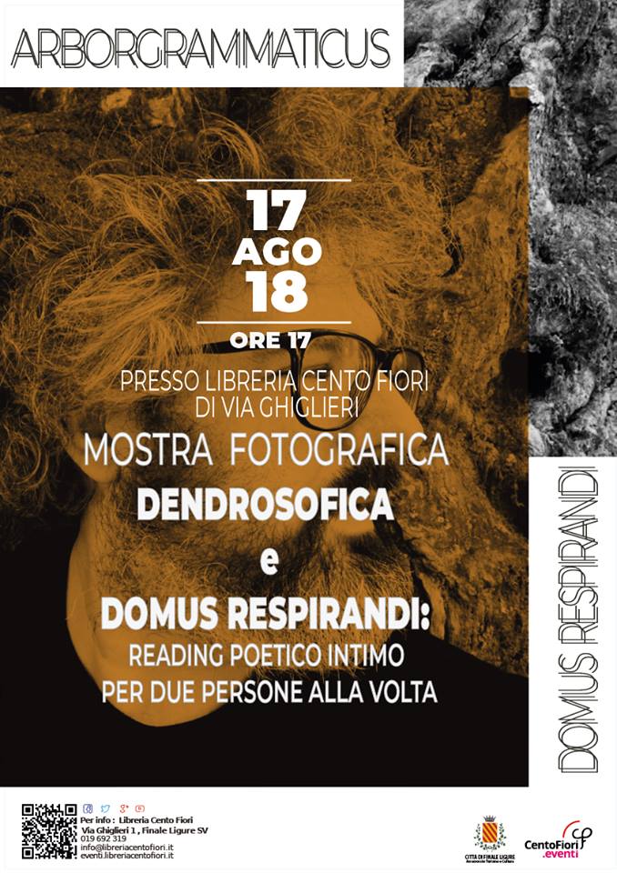 Tiziano Fratus torna in Liguria per presentare gli ultimi frutti del suo lavoro: la mostra fotografica °Arborgrammaticus°, la performance poetica °Domus respirandi°, il silvario esplorativo °Il bosco è un mondo° (Einaudi).