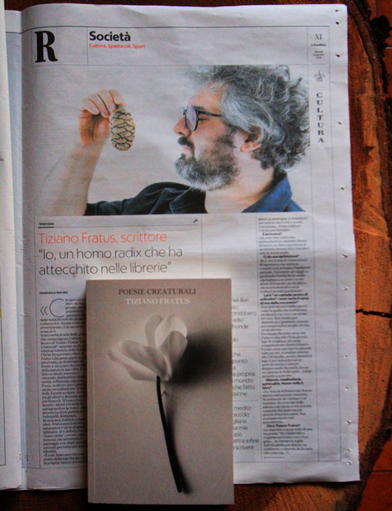 A proposito di °Poesie creaturali°, meditazione, natura, scrittura, editoria, insomma il percorso di questi ultimi due decenni. Ringrazio Francesca Bolino per la sua attenzione, cura e pazienza, Leonardo Bizzarro per quel che lui sa.