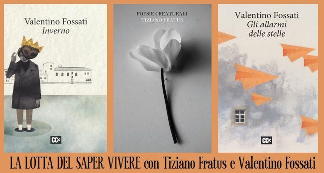 I due poeti si confrontano coi vent’anni della propria fucìna letteraria. Tiziano Fratus (Bergamo, 1975) illustra Poesie creaturali. Un bosco in versi, opera che abbraccia e ridefinisce l’intero percorso lirico; Valentino Fossati (Genova, 1974) ragiona a proposito di due raccolte capitali del proprio scrivere, Inverno e Gli allarmi delle stelle. Confronto aperto fra due voci sotterranee della poesia dei nostri giorni: il mistero della scrittura, la dura disciplina, le mancanze, le figure dei padri e delle madri assenti, il richiamo della natura, in confronto raramente pacificato col mondo.