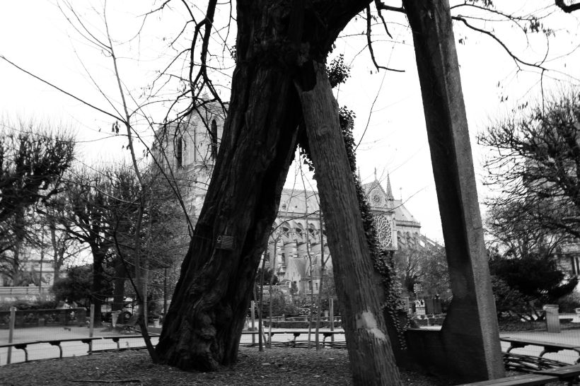 L’ultima volta che l’ho ammirata passeggiando lungo la Senna stavo andando a visitare l’albero più vecchio di Parigi. La robinia piantata nel 1601 da Jean Robin, giardinierie di Enrico IV. Una giornata uggiosa, grigia, poche luci. Già sotto i ponti la figura nervosa di Notre Dame trionfava, e ti accoglieva, come qualcuno che conosci da sempre. La città le girava intorno, con tutte le diverse forme di esistenza. Le acque scorrevano, i turisti a naso in su fotografavano, gli abitanti andavano al lavoro o confabulavano dei loro problemi ordinari. Anche l’albero antico radicava affannoso, stanco, di storia ne ha respirata tanta. E forse mai si sarebbe atteso di veder bruciare la forêt, la foresta, come veniva chiamata la cupola di Nostra Signora di Parigi. Mi chiedo ora se avrò mai la fortuna di poterla ritrovare, ricostruita, risorta dalle ceneri, un giorno.