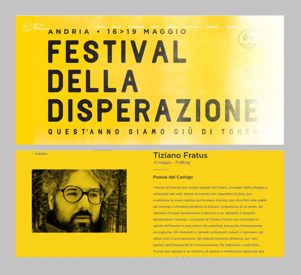 Domenica 18 maggio Tiziano Fratus sara ad Andria, nelle Puglie, per partecipare al Festival della Disperazione, un nome una garanzia.