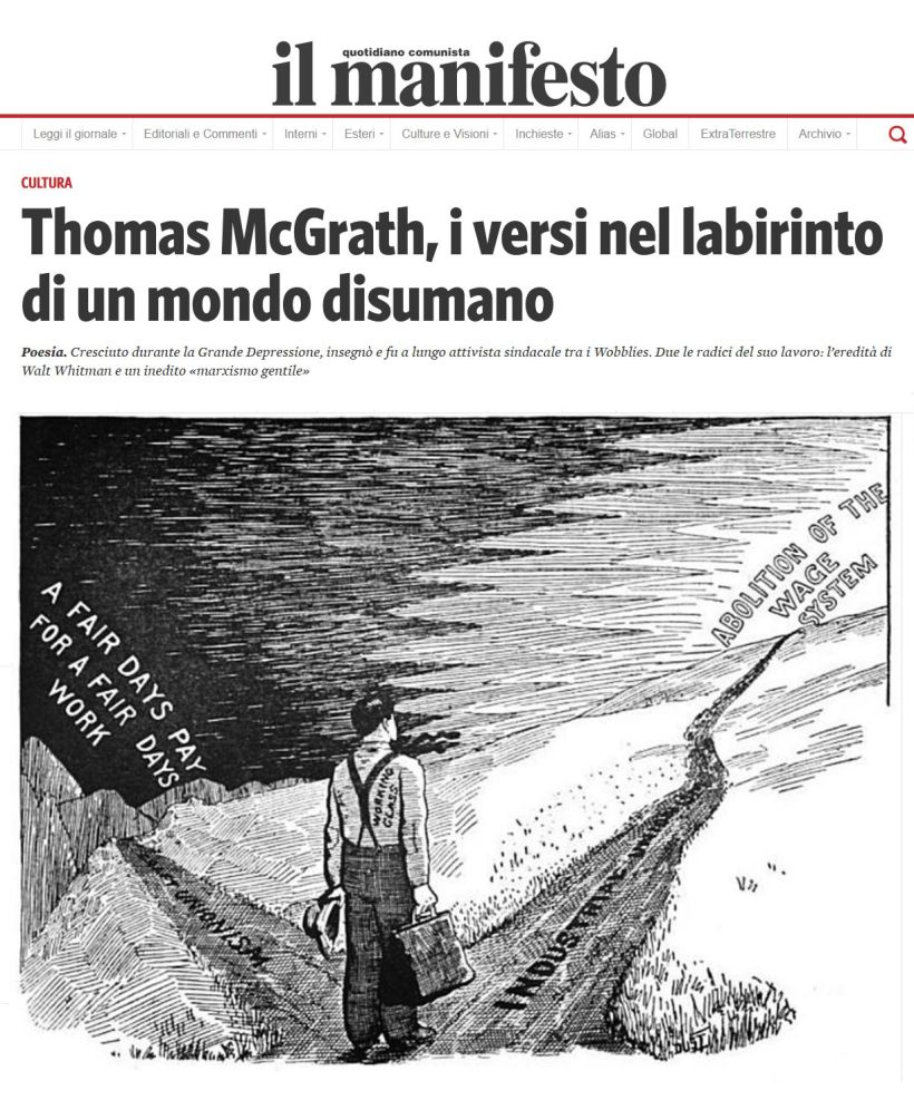 E’ uscito ieri sulle pagine de Il Manifesto un articolo firmato da Tiziano Fratus e dedicato ad uno dei suoi poeti più amati, l’americano Thomas McGrath. Buona lettura e buona scoperta.