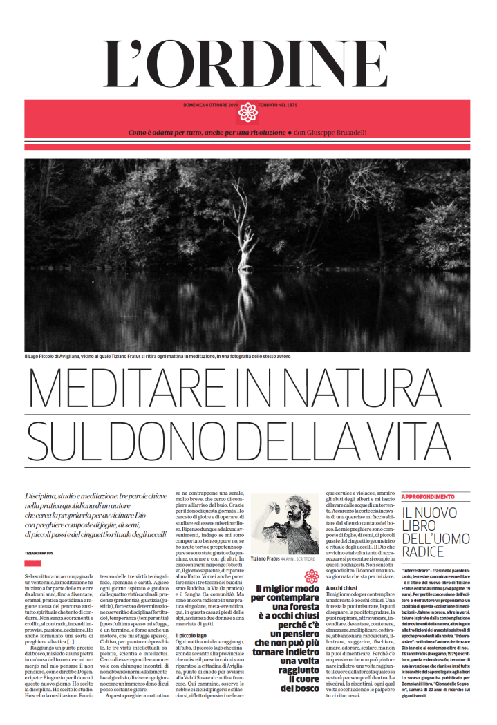 Un ampio estratto dall’opera Interrestràre. Quaderno di meditazioni è pubblicata nell’inserto L’Ordine, settimanale culturale in allegato ai quotidiani La Provincia di Como e La Provincia di Sondrio, in uscita domani, domenica 6 ottobre.