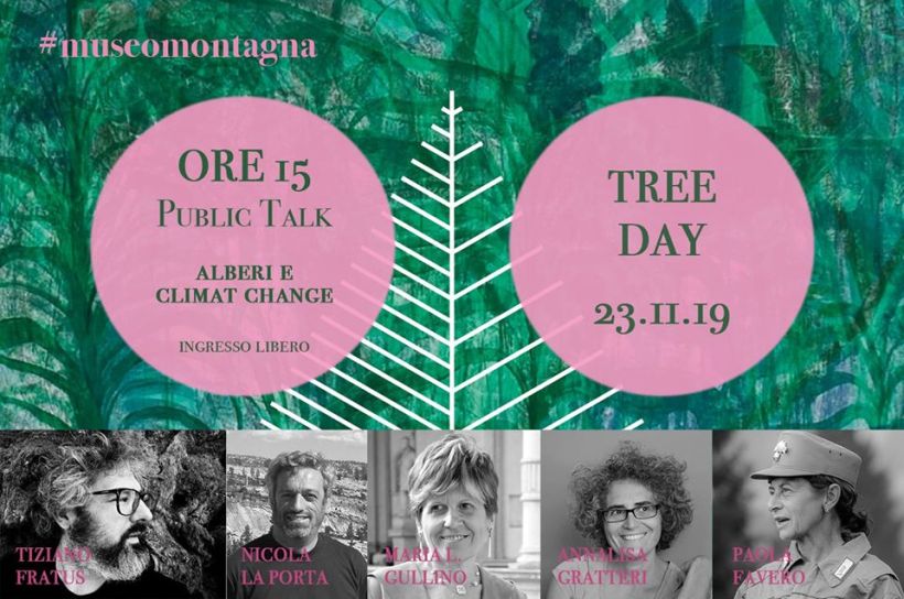 Public Talk: Alberi e climat change – Quali sono i temi più urgenti in materia di alberi, boschi e foreste, alla luce del cambiamento climatico in atto? Che cosa si intende oggi per biosicurezza e quale ruolo rivestono gli alberi in questo preciso momento storico? Intervengono: Nicola La Porta (Fondazione Edmund Mach di Trento), Maria Lodovica Gullino (Centro Agroinnova per la salute delle piante di Grugliasco), Annalisa Gratteri (Extinction Rebellion), gli autori Tiziano Fratus e Paola Favero