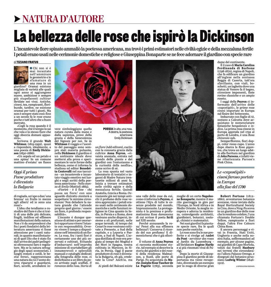 Oggi si parla di rose: La bellezza delle rose che ispirò la Dickinson, Rubrica Natura d’autore, La Verità.