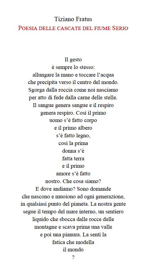 C’è un luogo naturale che oscilla al centro dell’identità e dell’immaginazione dei bergamaschi: si tratta delle cascate del fiume Serio, a Valbondione, in cima alla valle che ne prende il nome. Le acque dei ruscelli che disgelano dai ghiacciai e dai nevai delle Orobie ricadono nel lago naturale del Barbellino, a 2128 metri s.l.m., e da qui al bacino artificiale che sta a metri 1862, delimitato da una diga costruita a inizio Novecento. A 1750 metri sboccano le cascate che precipitano in tre salti per una misura complessiva che si aggira fra i 300 e i 315 metri, le più alte d’Italia. Prima della costruzione della diga, in particolari condizioni, si poteva ammirare anche un unico salto, ma ora, con lo sfruttamento delle acque per la produzione idroelettrica, le cascate vengono aperte al pubblico poche volte l’anno. Eppure, lì dove le acque sgorgano violentemente e si polverizzano pulsa qualcosa di magnetico, qualcosa che richiama al rispetto timoroso dei riti antichi del pianeta.