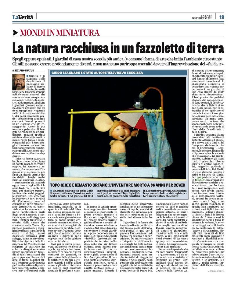 Spogli oppure opulenti, i giardini di casa nostra sono la più antica (e comune) forma d’arte che imita l’ambiente circostante. Gli stili possono essere profondamente diversi, e non mancano purtroppo oscenità dovute all’improvvisazione del “fai da te”.Oggi a pagina 19 del quotidiano La Verità. Buona lettura.