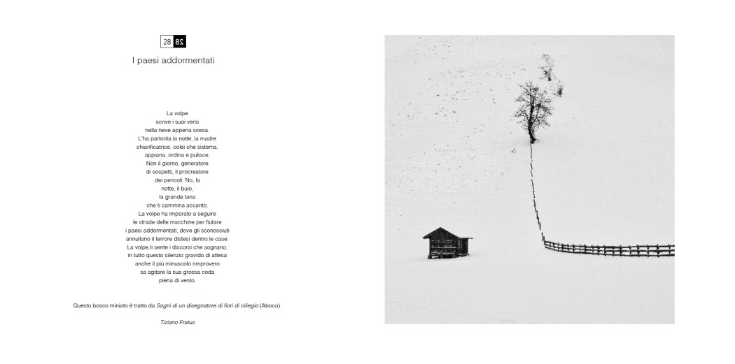 Roberto Besana ha curato un bel libro, Il paesaggio – Dialogo tra Fotografia e Parola (Topffer editore), tributo al giornalista e viaggiatore Pietro Greco. Il volume raccoglie una selezione delle splendide fotografie in bianco e nero di Pietro e altrettanti contributi di autori, giornalisti, poeti, studiosi e viaggiatori fra i quali Piero Angela, Silvia Bencivelli, Valentina Fortichiari, Piergiorgio Odifreddi, Telmo Pievani, Mario Salomone, Silvestro Serra, Giuseppe Longo, Chiara Valerio e Stefano Zuffi. E’ presente anche un modesto Homo Radix, qui con un bosco miniato, I paesi addormentati, tratto da Sogni di un disegnatore di fiori di ciliegio (Aboca). Buona lettura.