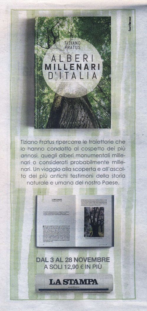 Novembre è il mese della Giornata Nazionale dell’Albero, lo e la celebreremo in diverse occasioni e città. Anche grazie ai quotidiani, infatti Alberi millenari d’Italia, appena sbocciato nelle librerie, sarà allegato ad alcuni giornali. Iniziamo con La Stampa che lo venderà per l’intero mese, dal 3 al 28.
