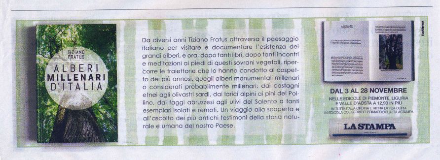 Se le informazioni che ho ricevuto non sono fallaci, domani dovrebbe sbocciare un’edizione speciale di Alberi millenari d’Italia nelle edicole di Valle d’Aosta, Piemonte, Liguria, Veneto, Friuli Venezia Giulia e parte della Lombardia. Il silvario, pubblicato da Idee Feltrinelli e Gribaudo, è disponibile in tutte le librerie Feltrinelli, quantomeno, ma sarà anche in allegato ai quotidiani La Stampa, Il Secolo XIX, Corriere delle Alpi, Il Piccolo di Trieste, Il Mattino di Padova, La Tribuna di Treviso, La Nuova di Venezia e Mestre, Messaggero Veneto, La Provincia Pavese, Gazzetta di Mantova, Sentinella del Canavese. Chiedete comunque al vostro edicolante di fiducia. Buona visione, buona lettura, buoni cammini.