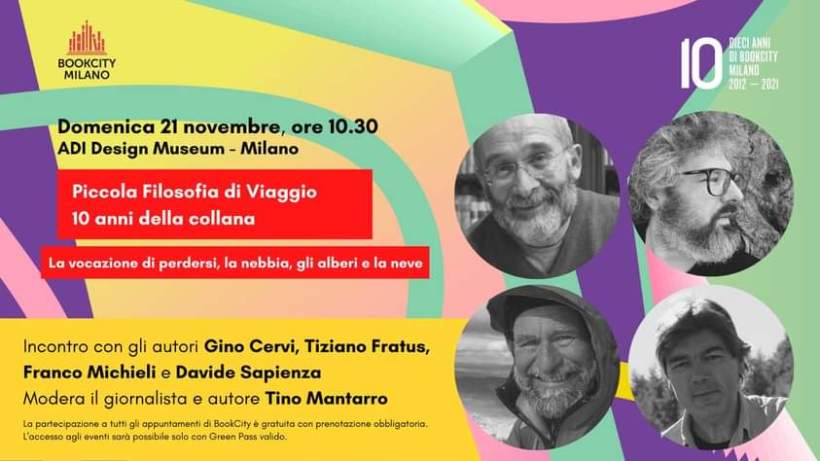 Era in programma la partecipazione ad un terzo evento, un incontro con altri autori al Museo del Design per celebrare i dieci anni della collana Piccola filosofia di viaggio di Ediciclo. Purtroppo l’incontro è fissato la domenica mattina alle ore 10.30 e quindi incompatibile con i precedenti appuntamenti. Un pensiero a tutti gli autori coinvolti e all’editore.