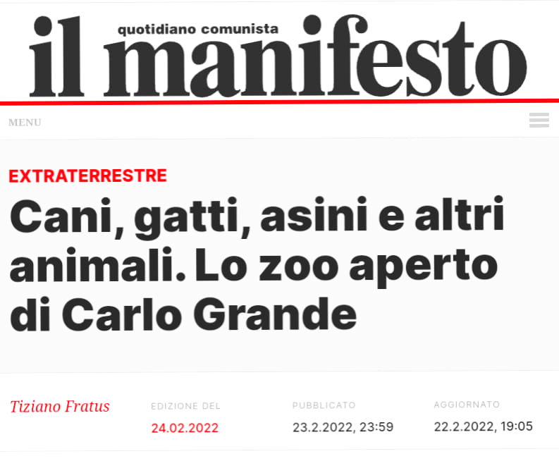 Oggi su Il Manifesto, nell’inserto ambientalista ExtraTerrestre un nuovo articolo della rubrica La Dendroteca: Lo zoo aperto di Carlo Grande, dedicato ai suoi quaderni animalisti ma anche un po’ memoir. Buona lettura.