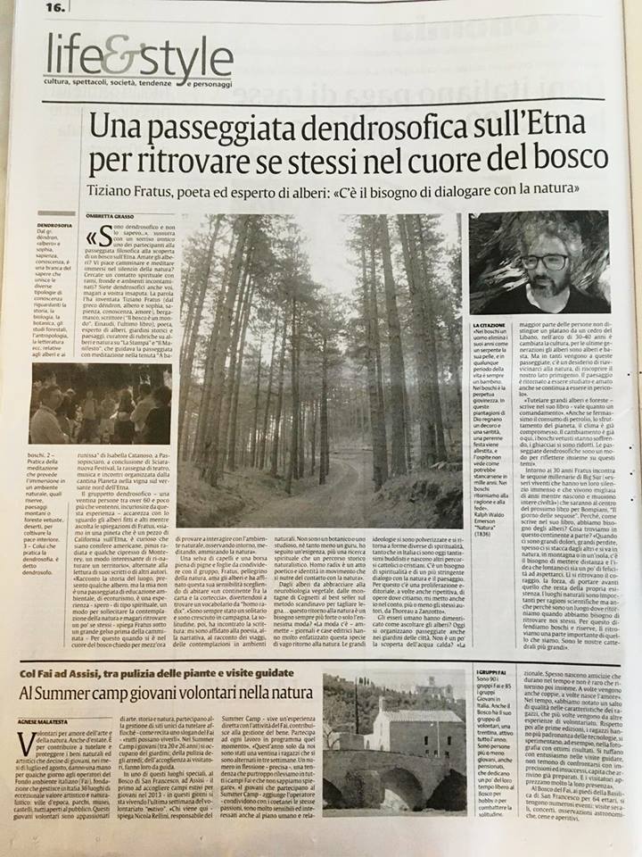 Sono felice di tornare nei boschi e nei luoghi etnei! A parte l’ultima visita, lo scorso anno, al Castagno dei Cento Cavalli e al Castagno di Sant’Agata per redigere Alberi millenari d’Italia, l’ultima volta era stato quattro anni orsono per un bel festival, avevamo meditato in una pineta di alberi di origine americana… ecco il pezzo che ne era uscito su La Sicilia: https://studiohomoradix.com/wp-content/uploads/2018/08/fratus_lasicilia_19agosto2018.jpg