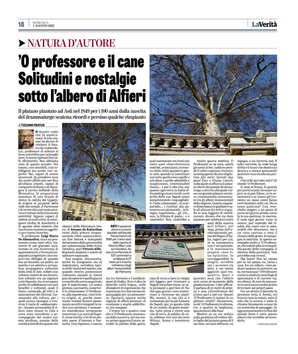“O professore e il cane, solitudini e nostalgie sotto l’albero di Alfieri”