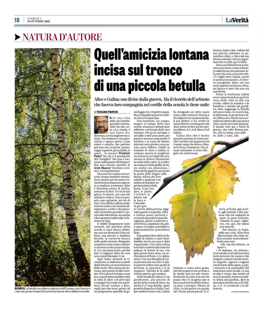 Alice e Galina, 8 anni. Una betulla, anzi due betulle le uniscono nonostante la distanza imposta dalla guerra in Ucraina.