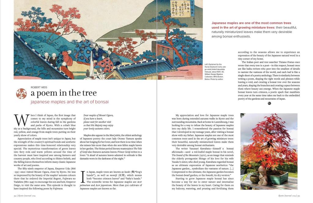 Non è niente di che ma ringrazio Robert Weis per avermi citato in un suo pezzo appena uscito nel nuovo numero di Kyoto Journal, tutto dedicato a natura e alberi. La riviera è molto bella, in inglese, e la potete ordinare sul sito https://www.kyotojournal.org/