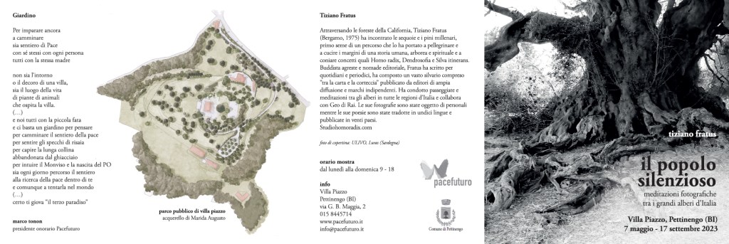 E bon, domenica vi aspettiamo a Villa Piazzo, a Pettinengo, per l’inaugurazione de Il popolo silenzioso – Meditazioni fotografiche intorno agli alberi monumentali, ore 16.30. Oltre all’esposizione fotografica c’è un parco popolato da diversi alberi secolari e protetti, quali cedri, sequoie, castagni e araucarie cilene. Insomma, vi aspettiamo 🌲🌳🍀🙏