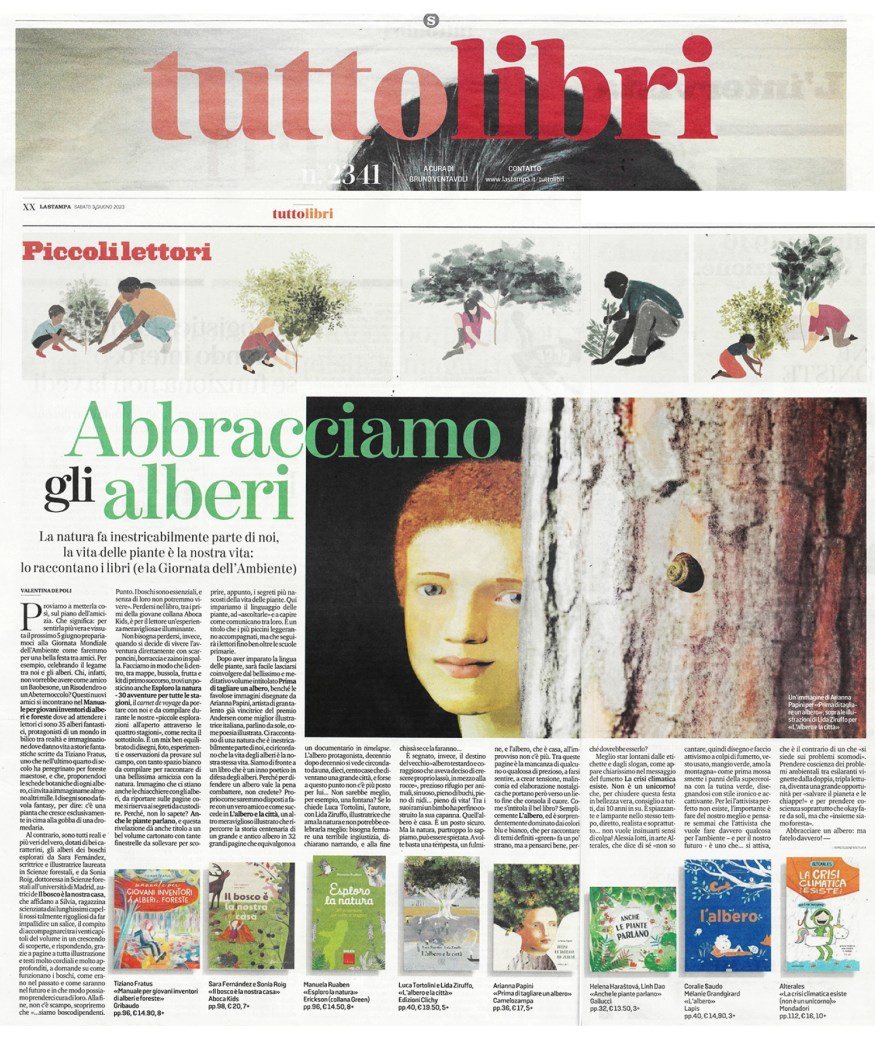 In occasione della celebrazione della Giornata Mondiale dell’Ambiente, su TTL Tuttolibri del 3 giugno è uscita una ricca paginona dedicata ad alcune novità che avvicinano bambini e alberi, firmata da Valentina De Poli: Abbracciamo gli alberi. Tra i protagonisti Tiziano Fratus e il suo Manuale per giovani inventori di alberi e foreste. Una buona lettura!