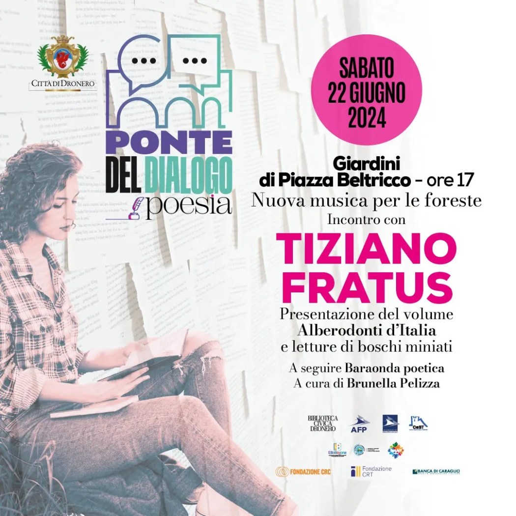 Sabato 22 giugno invece si torna nel cuneese, Tiziano Fratus partecipa al festival Ponte del Dialogo di Dronero, dialogando con la poetessa e amica Brunella Pelizza.