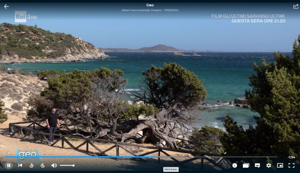 Ecco il primo arbodoc dell’Homo radix di questa nuova annata televisiva per Geo. Lo abbiamo dedicato al ginepro plurisecolare che radica sulle spiagge di Porto sa Ruxi a Villasimius. 400 o 500 anni stimati, legni cortorti, stracciati, vento e salsedine. Alla fine una poesia composta per l’occasione ammirando le sue forme e i suoi tormenti. Una buona visione.