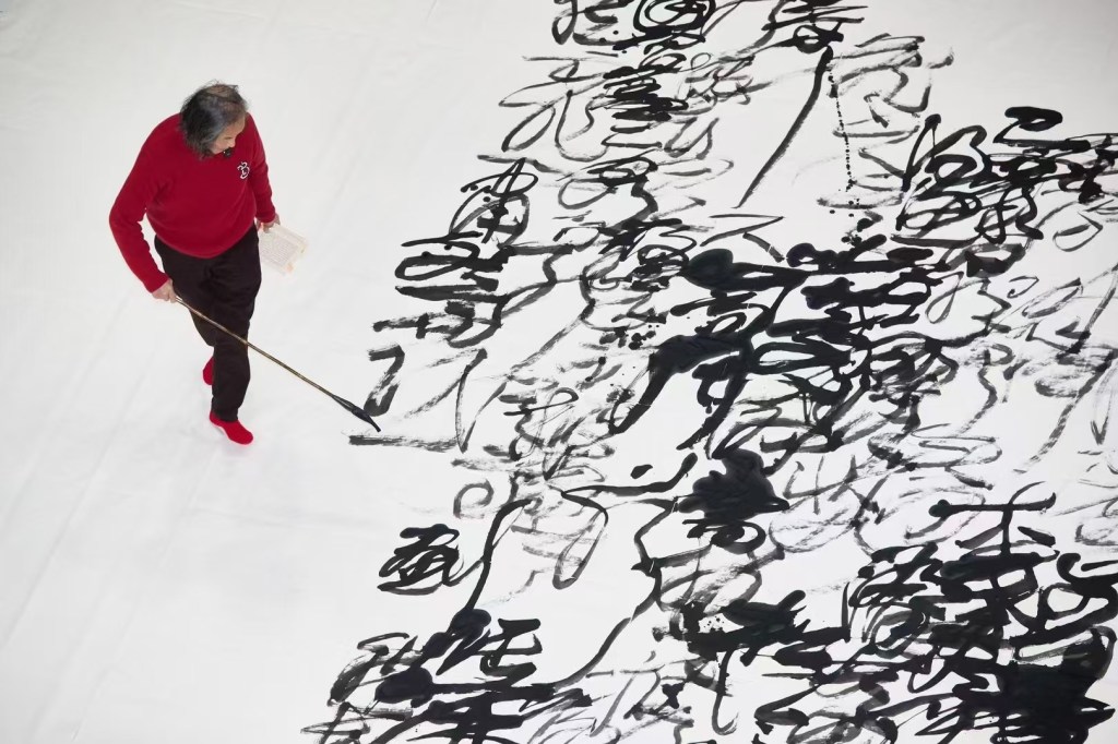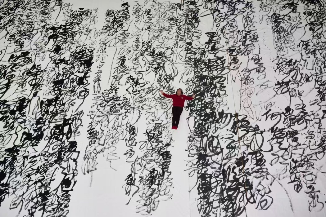 Il professore di calligrafia Wang Dongling ha realizzato il monumentale Ode alla scogliera rossa al campus Xiangshan.