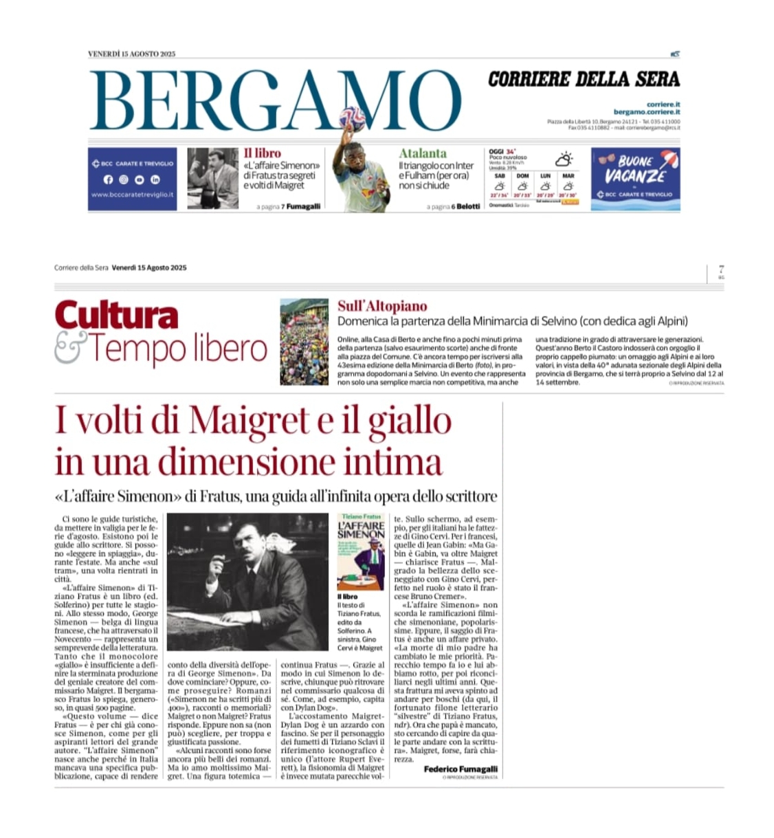 L’Affaire Simenon si guadagna una nuova recensione a cura di Federico Fumagalli sulle pagine bergamasche del Corriere della Sera,