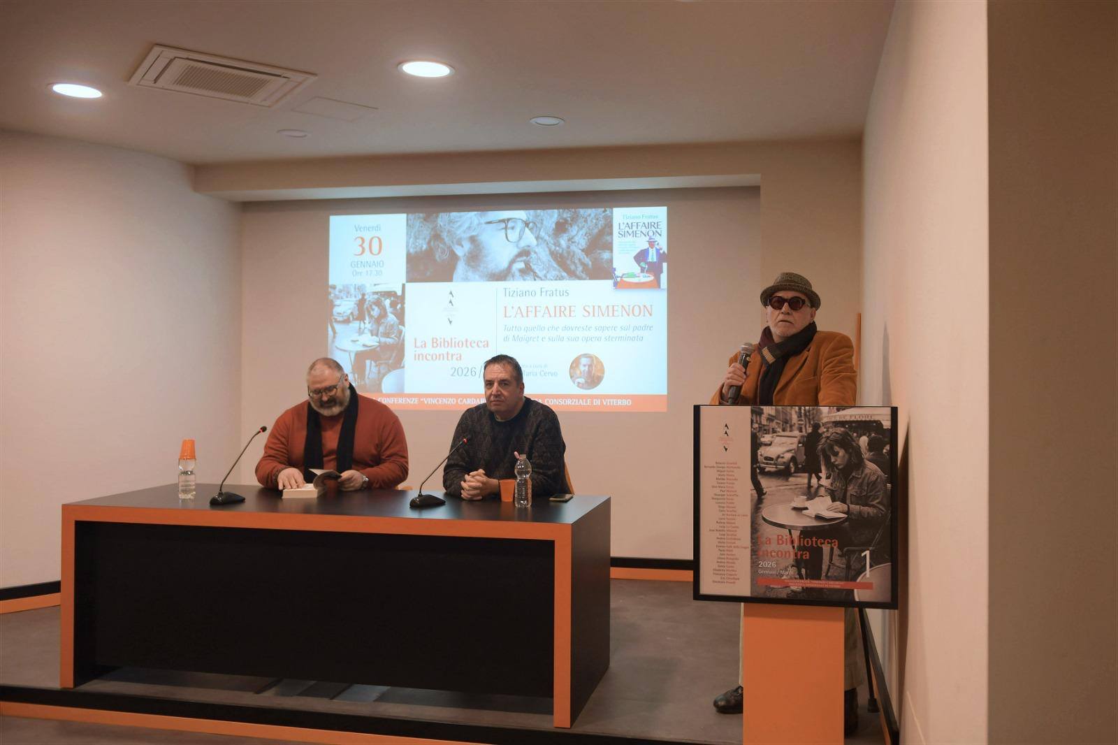 Ieri splendida serata alla biblioteca consorziale di Viterbo. Anzitutto debbo ringraziare Paolo Pelliccia che mi ha invitato, e i suoi collaboratori che sono gentilissimi, la biblioteca é tra l’altro di una bellezza clamorosa. Poi Ci tengo a ringraziare il caro Gian Maria Cervo che ho rivisto dopo anni e col quale condividiamo molti ricordi teatral-quasi(o Quadri)-giovanili: dialogare con lui é stato un piacere. E poi ringrazio le tantissime persone che sono venute ad ascoltare, che hanno posto quesiti e che hanno acquistato L’Affaire Simenon. Di certo una delle migliori serata da quando presento questo libro, a partire dall’estate scorsa. E poi ringrazio Umberto Montrezza per le fotografie che qui posso condividere. Per chi fosse interessato la registrazione dell’intero incontro e’ disponibile sul canale YouTube della biblioteca consorziale.