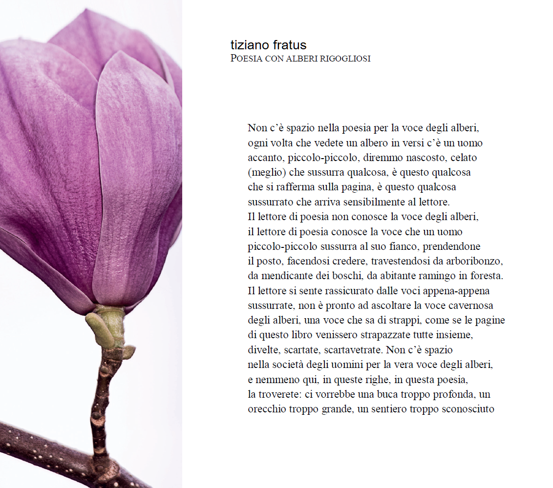 >>> http://www.nuoviargomenti.net/poesie/agreste-silvario-in-versi-radici/ >>> http://www.nuoviargomenti.net/autore/tiziano-fratus/
