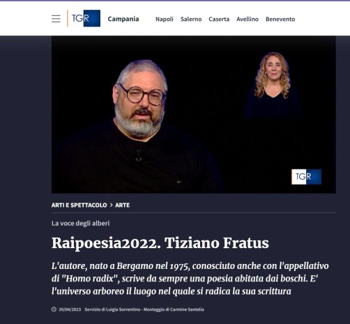E’ disponibile l’intervista-lettura di Tiziano Fratus a Rai Poesia, registrata negli studi Rai di Napoli e coordinata da Luigia Sorrentino che si ringrazia di cuore. Buona visione e buon ascolto!