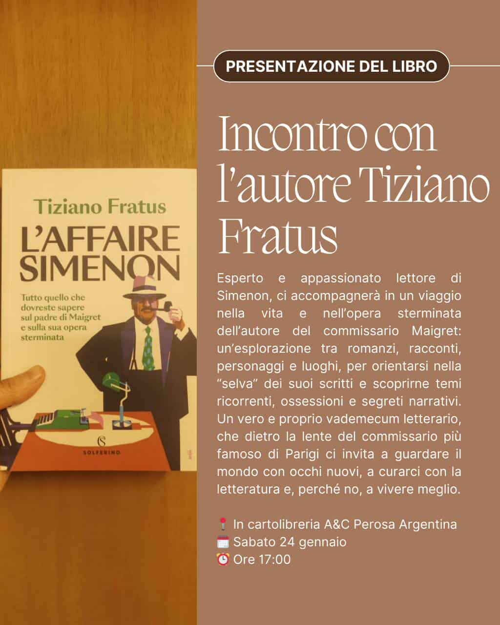24 gennaio, Cartolibreria A&C, ore 17.00 – Presentazione de L’Affaire Simenon, l’autore dialoga con Francesca Toppino