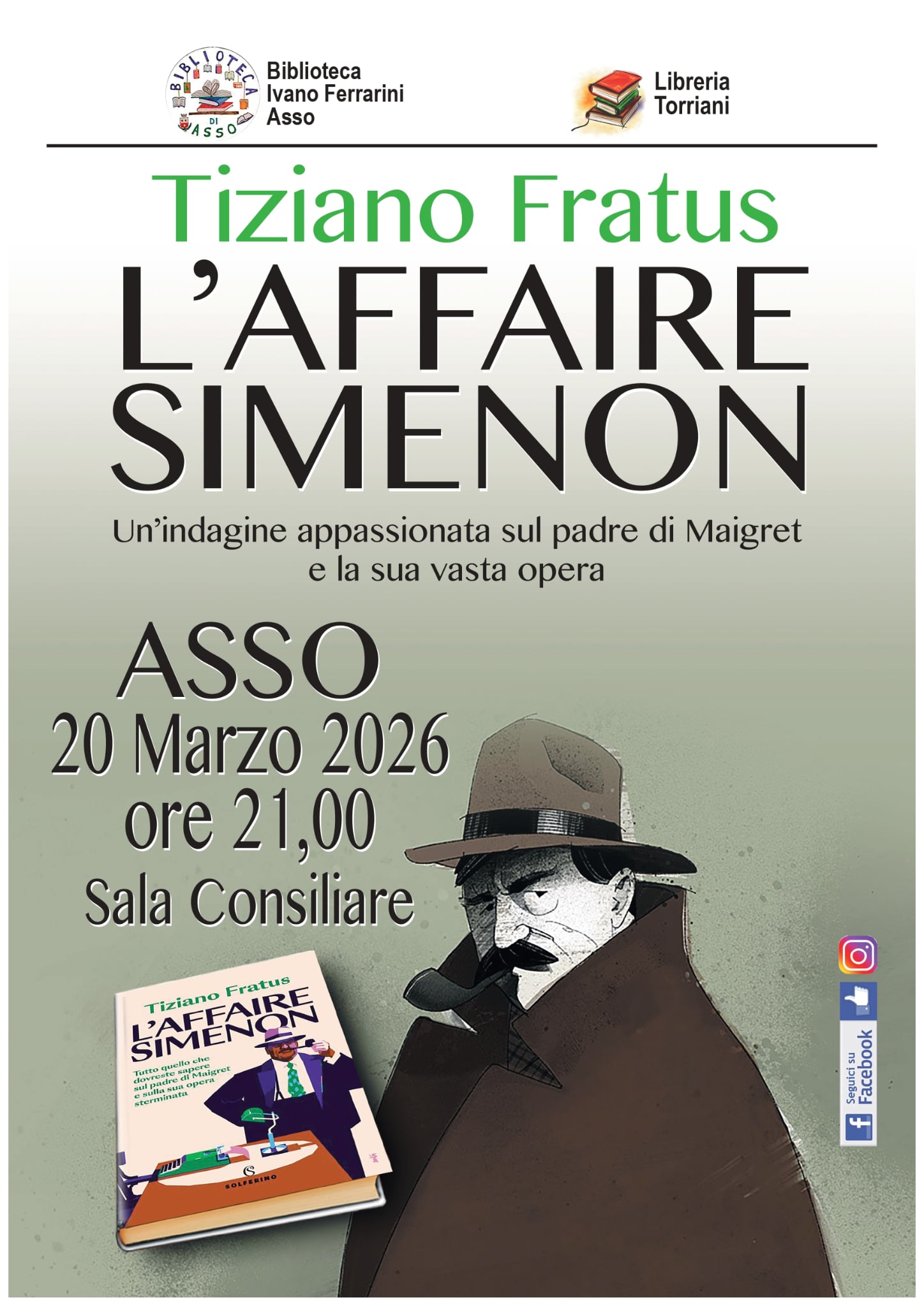 Venerdì 20 marzo, Sala Consiliare, ore 21.00 – Presentazione de L’Affaire Simenon, in collaborazione con la Libreria Torriani