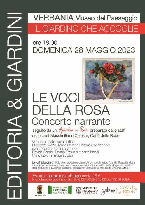 Presentazione dell’antologia Le voci della rosa. Lettura di nove poeti contemporanei, a cura di Elisabetta Motta, Pendragon, partecipano i poeti Donatella Bisutti, Corrado Bagnoli e Tiziano Fratus, musiche eseguite da Vincenzo Zitello, un evento organizzato dalla Casa della Poesia di Monza.